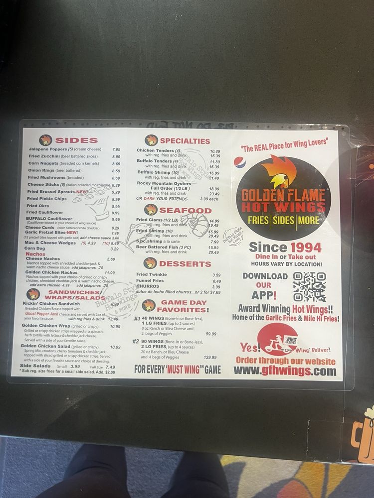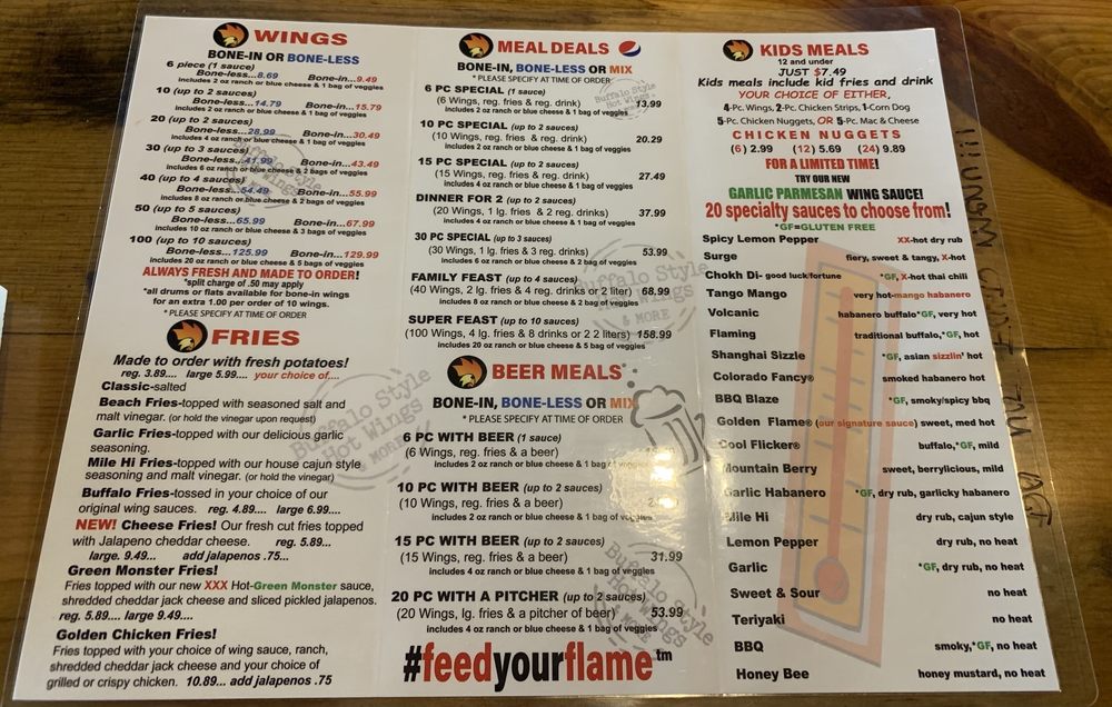 Introducing the Menu at Golden Flame Hot Wings